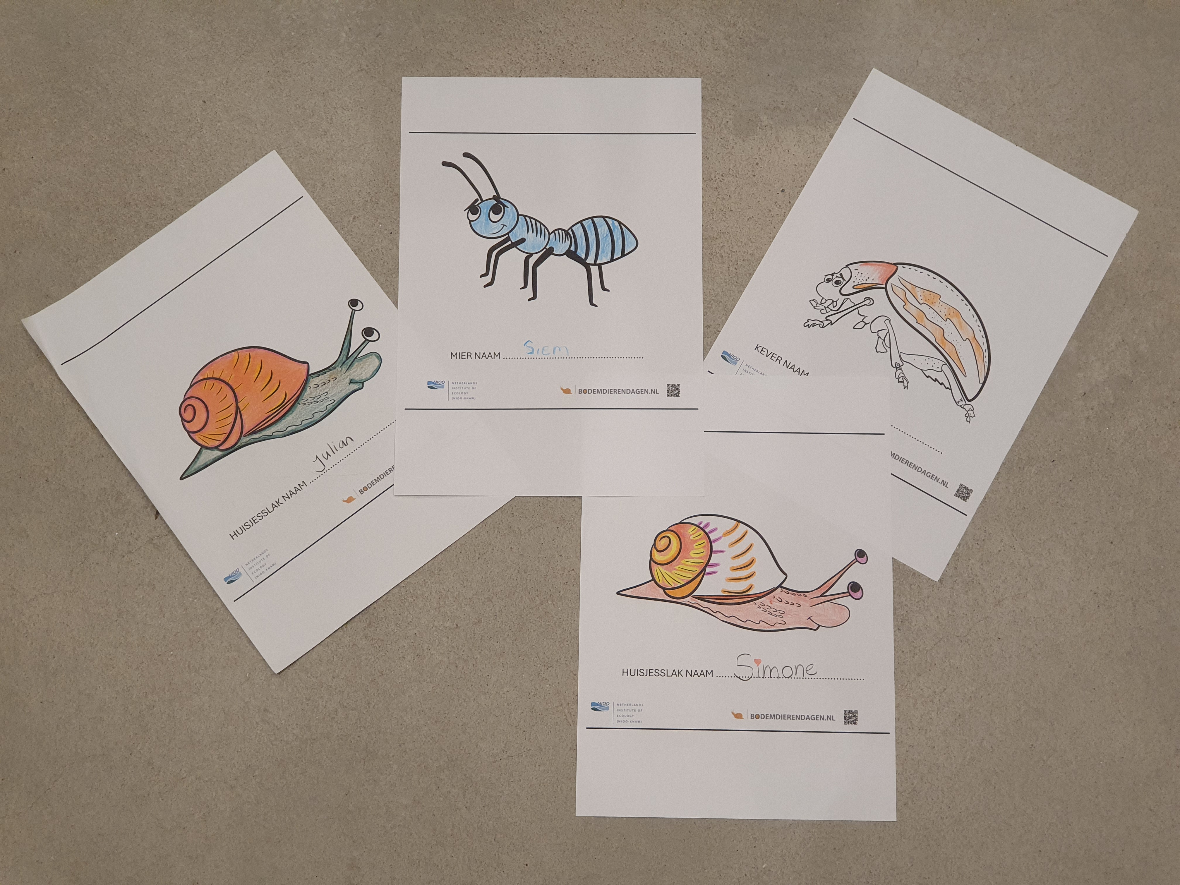 Gelukkig komen bodemdieren wel terug als je bestrating weghaalt en de ruimte teruggeeft aan bodem, planten en dieren. Zo is het gemiddelde rapportcijfer voor bodembiodiversiteit van de afgelopen 10 jaar voor bestrate tuinen een 5,7, van half-groene tuinen een 6,2, en van groene tuinen zelfs een 6,8! En een geveltuin van 3 tegels van 30x30cm zou ruimte kunnen geven aan 2700 mijtjes, 12 gram regenwormen en 55000 aaltjes. Zo zie je maar dat je zelfs met zoiets kleins als een geveltuintje echt wel impact kan maken! Soms duurt het eventjes voordat alle bodemdieren teruggekeerd zijn. Als je – bijvoorbeeld samen met een kind – één of meer tegels weghaalt, is het misschien leuk om dan alvast te fantaseren over hoe het toekomstige bodemleven eruit gaat zien. Hiervoor hebben wij speciale kleurplaten ontwikkeld voor elk van de Tiny Ten bodemdieren, die hieronder zijn te downloaden. Veel tegelwip- en kleurplezier gewenst!