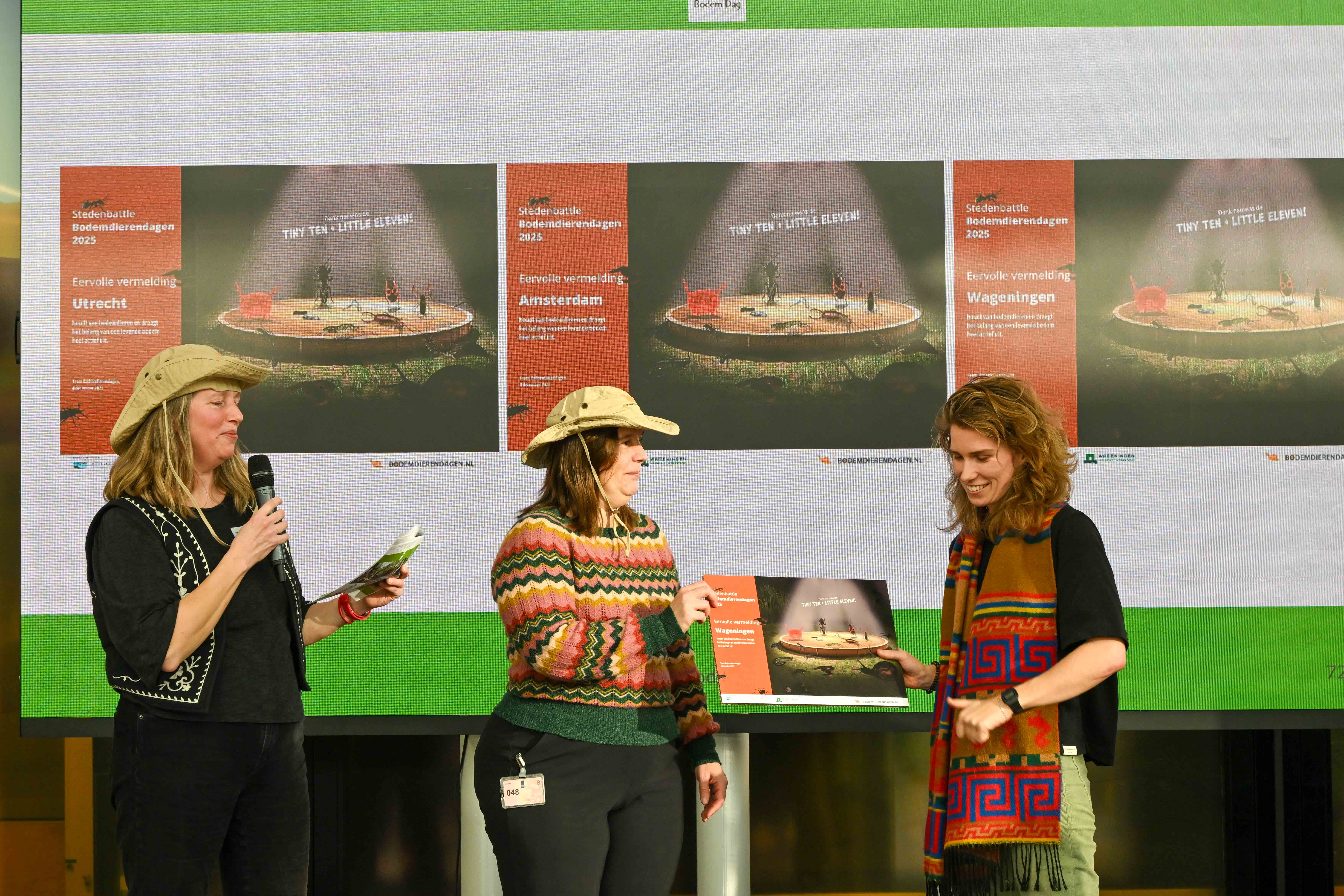 Naast de twee winnaars was het hele veld sterk. Drie andere steden verdienden dan ook een eervolle vermelding met hun deelname. Amsterdam organiseerde bodemdierensafari’s tijdens de Alternatieve Dierendag-viering bij De Ceuvel, zocht met veel enthousiasme en maakte zelfs een logo voor de eigen Stedenbattle. Utrecht scoorde maar liefst een 9,1 voor de bodem bij de park-waarneming samen met wethouder, schoolklassen, ecologen en bodemkundigen. Met geslaagde filmpjes riep ze Utrechters op om ook naar het bodemleven te kijken. En Wageningen ten slotte bracht bij alle kinderdagverblijven een waarnemers-pakketje langs, deed verslag in de plaatselijke krant en bemonsterde met het gemeenteteam het centrale kerkplein dat net vergroend was.